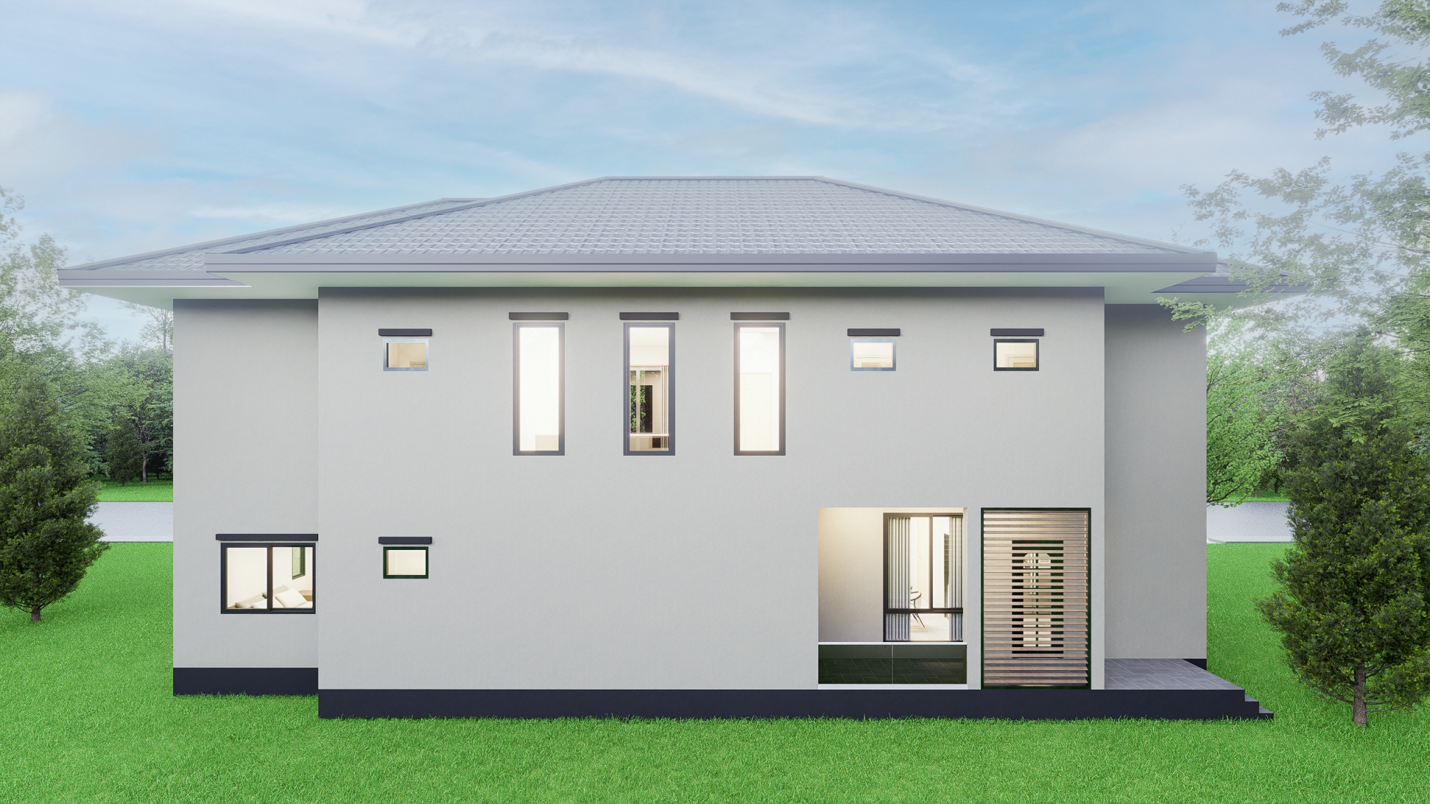 ขอต้อนรับสู่ PB-055 บ้าน 2 ชั้นที่ถูกยกระดับดีไซน์ไปอีกขั้น ด้วยการผสาน ความภูมิฐานของหลังคาทรงปั้นหยา เข้ากับ ความโมเดิร์นที่น่าค้นหา ของสไตล์ Contemporary อย่างลงตัว บ้านหลังนี้ถูกออกแบบมาเพื่อมอบ ประสบการณ์การอยู่อาศัยที่โปร่งสบาย เน้นการใช้ชีวิตที่เชื่อมโยงกับทัศนียภาพภายนอกอย่างเต็มที่ และสร้างความรู้สึกที่ โดดเด่นและมีระดับ ตั้งแต่แรกเห็น
