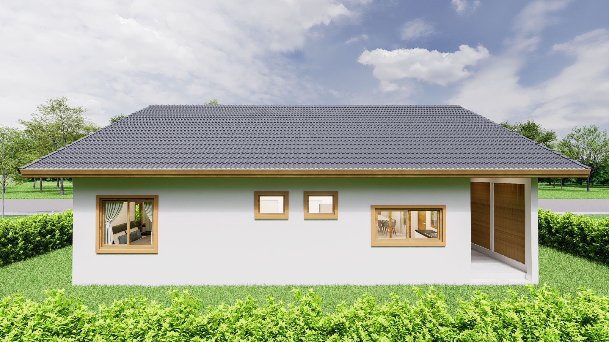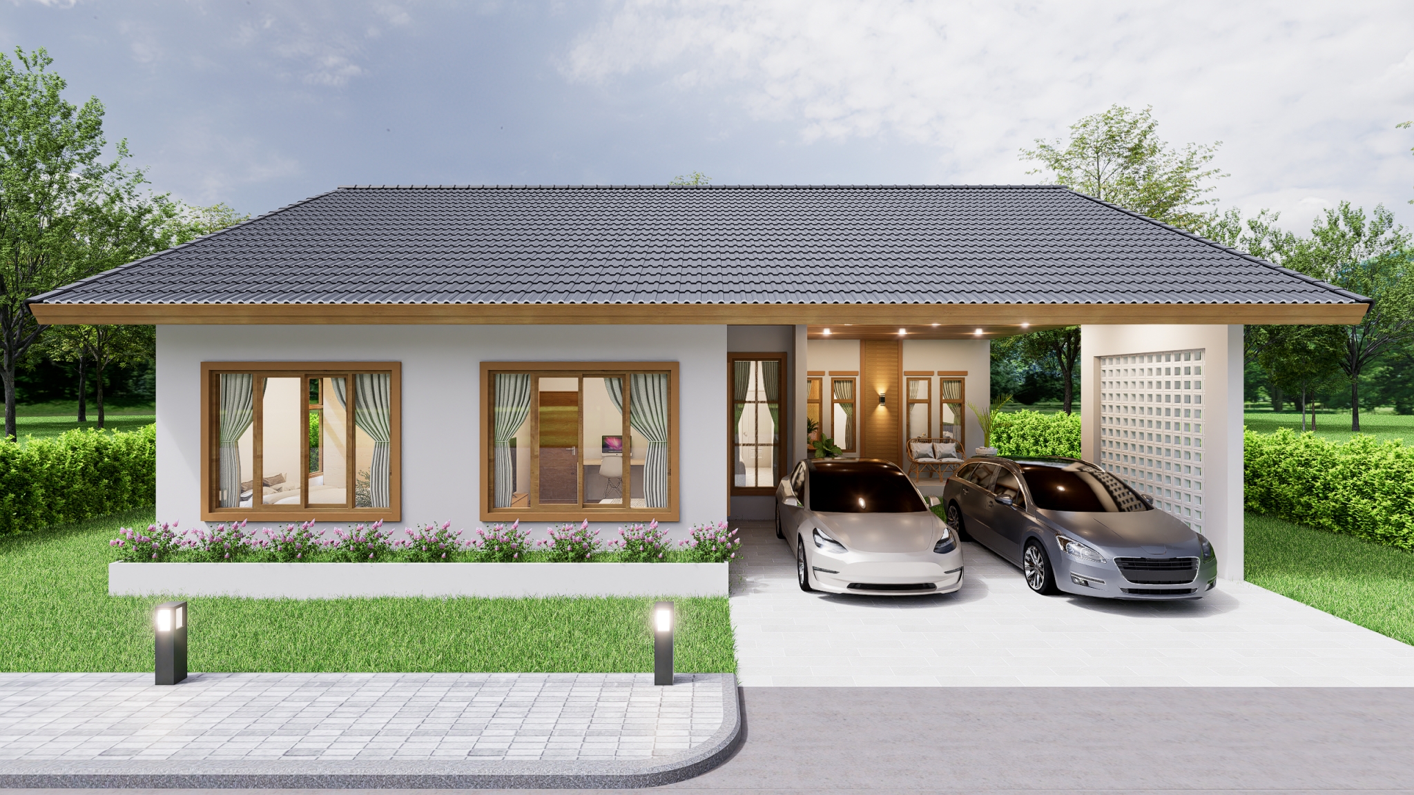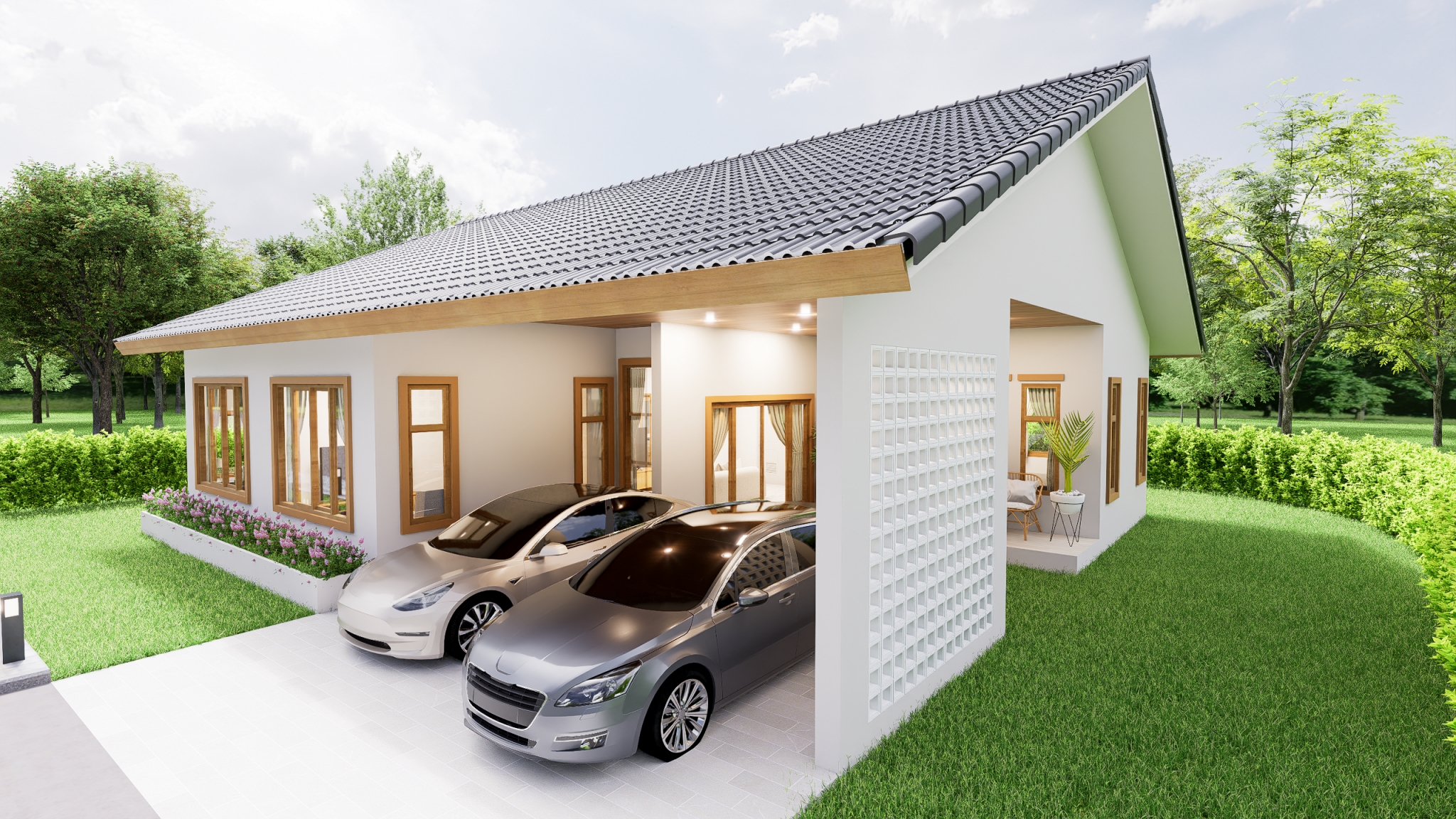 PB-077 : บ้าน 1 ชั้น ทรงปั้นหยา Contemporary